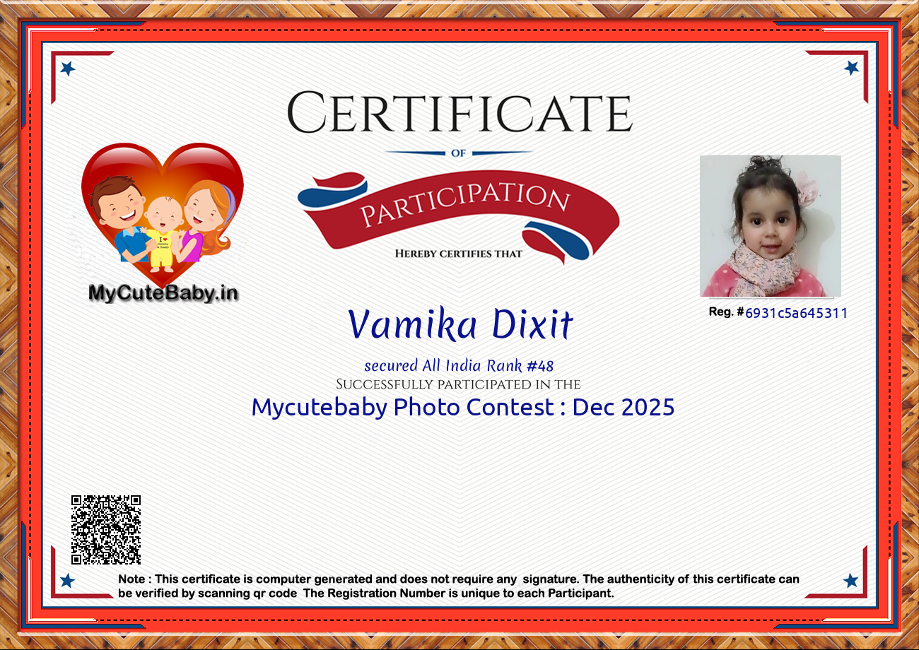 MyCuteBaby is India's most trusted and oldest baby photo contest with best voting securities & transparency system. MyCuteBaby has been organizing monthly contests since February 2017 and has declared 10,900 winners across 109 monthly contests from February 2017 to February 2026 .