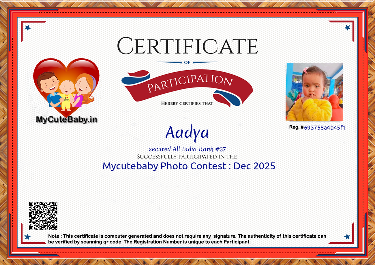 MyCuteBaby is India's most trusted and oldest baby photo contest with best voting securities & transparency system. MyCuteBaby has been organizing monthly contests since February 2017 and has declared 10,900 winners across 109 monthly contests from February 2017 to February 2026 .