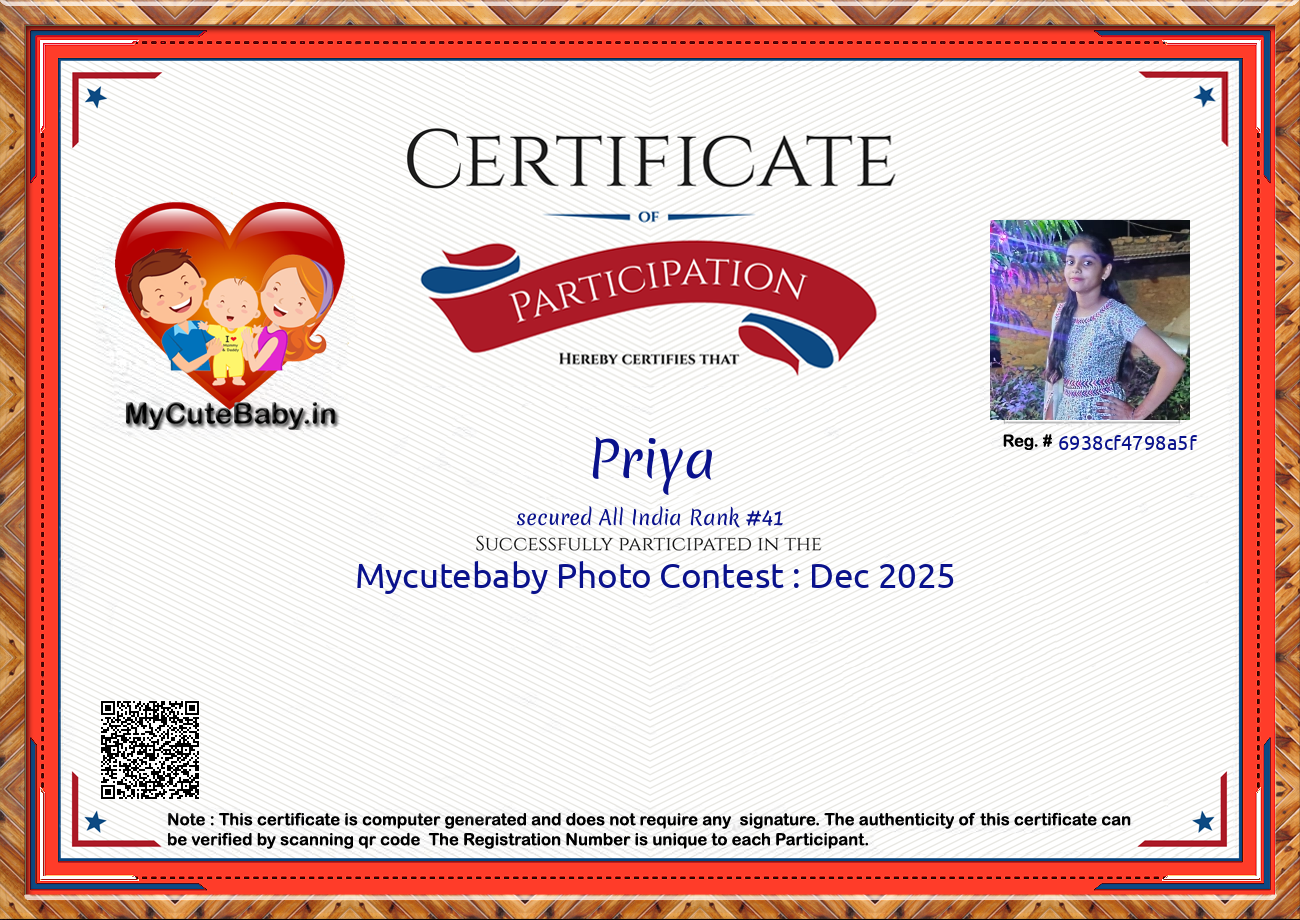 MyCuteBaby is India's most trusted and oldest baby photo contest with best voting securities & transparency system. MyCuteBaby has been organizing monthly contests since February 2017 and has declared 10,900 winners across 109 monthly contests from February 2017 to February 2026 .