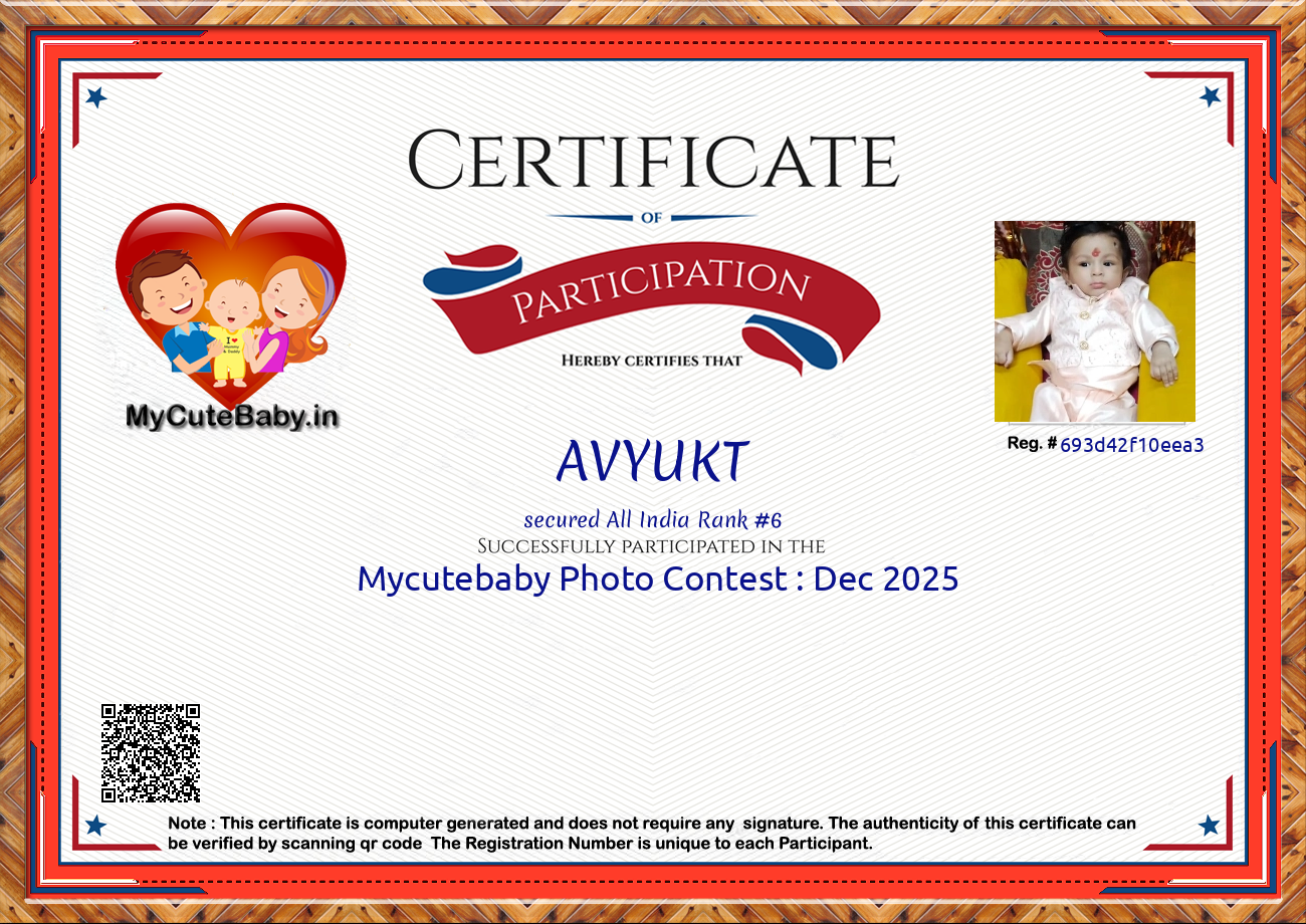 MyCuteBaby is India's most trusted and oldest baby photo contest with best voting securities & transparency system. MyCuteBaby has been organizing monthly contests since February 2017 and has declared 10,900 winners across 109 monthly contests from February 2017 to February 2026 .