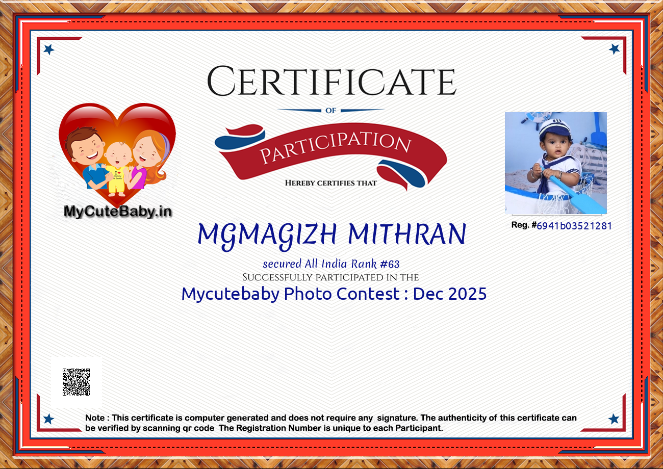 MyCuteBaby is India's most trusted and oldest baby photo contest with best voting securities & transparency system. MyCuteBaby has been organizing monthly contests since February 2017 and has declared 10,900 winners across 109 monthly contests from February 2017 to February 2026 .