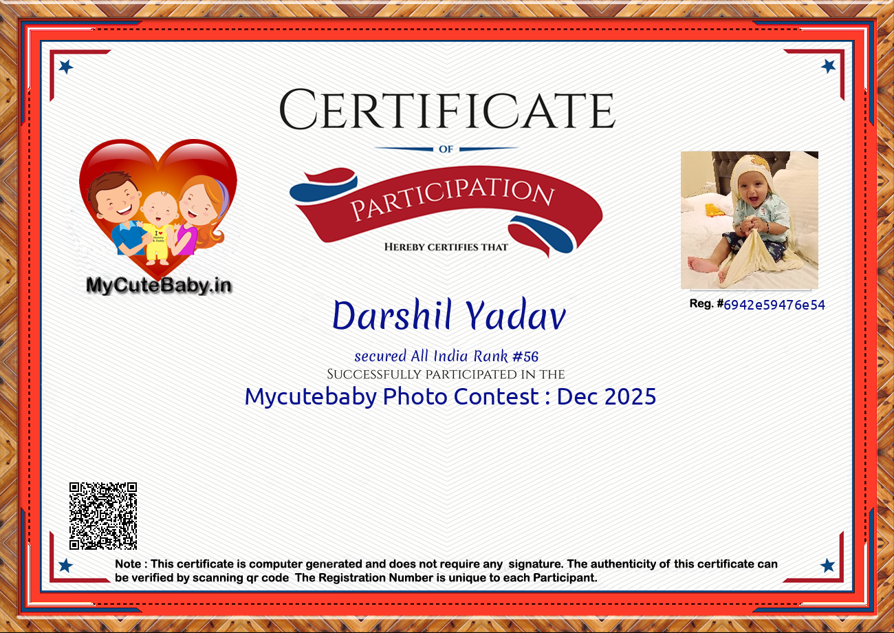 Participation certificate for all the participants whose mycutebaby votes are more than 1000.