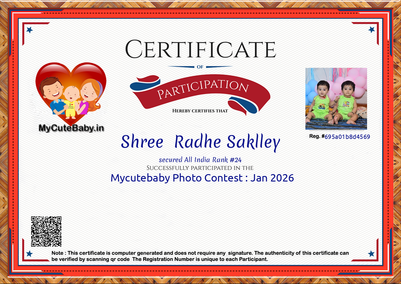 MyCuteBaby is India's most trusted and oldest baby photo contest with best voting securities & transparency system. MyCuteBaby has been organizing monthly contests since February 2017 and has declared 10,900 winners across 109 monthly contests from February 2017 to February 2026 .