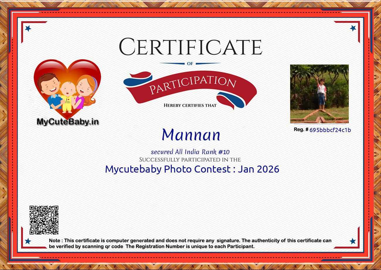 Participation certificate for all the participants whose mycutebaby votes are more than 1000.
