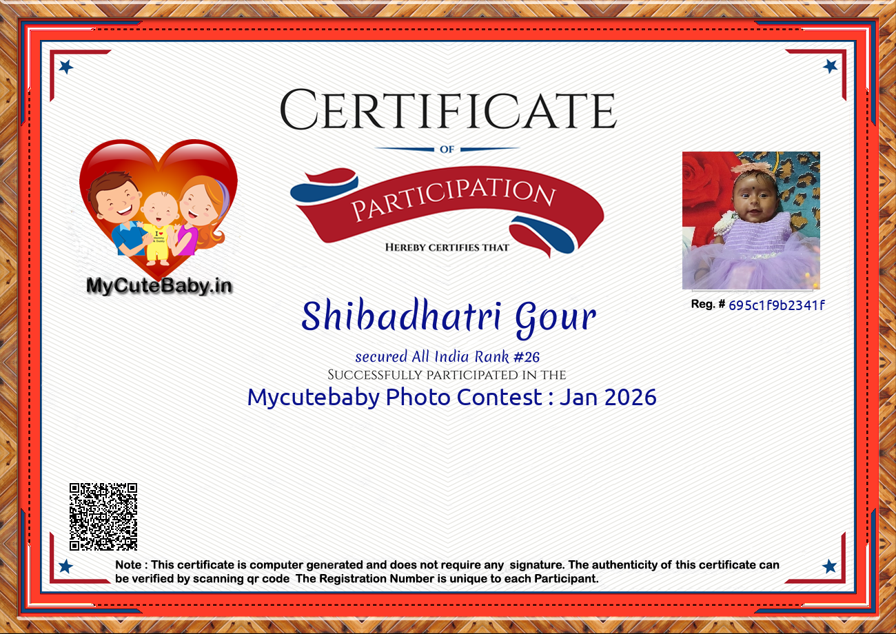 MyCuteBaby is India's most trusted and oldest baby photo contest with best voting securities & transparency system. MyCuteBaby has been organizing monthly contests since February 2017 and has declared 10,900 winners across 109 monthly contests from February 2017 to February 2026 .
