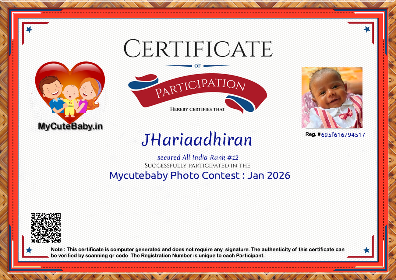 Participation certificate for all the participants whose mycutebaby votes are more than 1000.