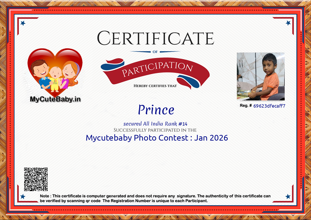 Participation certificate for all the participants whose mycutebaby votes are more than 1000.