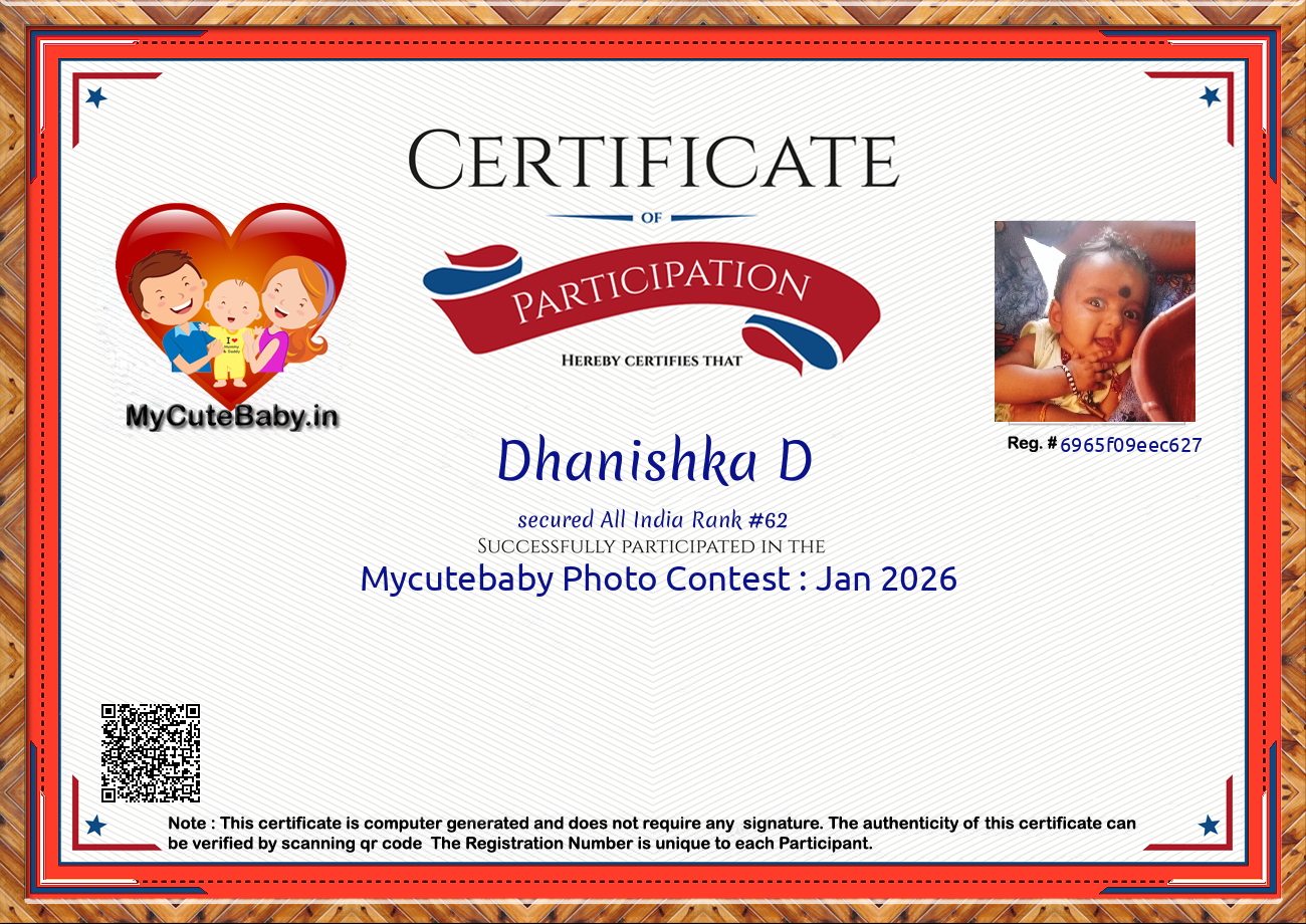 Participation certificate for all the participants whose mycutebaby votes are more than 1000.
