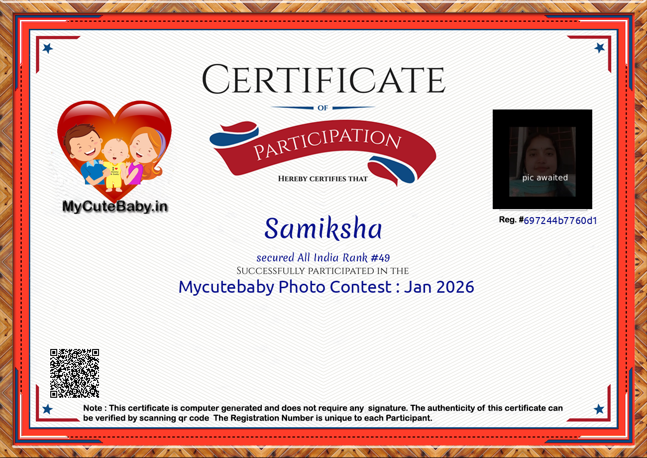 MyCuteBaby is India's most trusted and oldest baby photo contest with best voting securities & transparency system. MyCuteBaby has been organizing monthly contests since February 2017 and has declared 10,900 winners across 109 monthly contests from February 2017 to February 2026 .