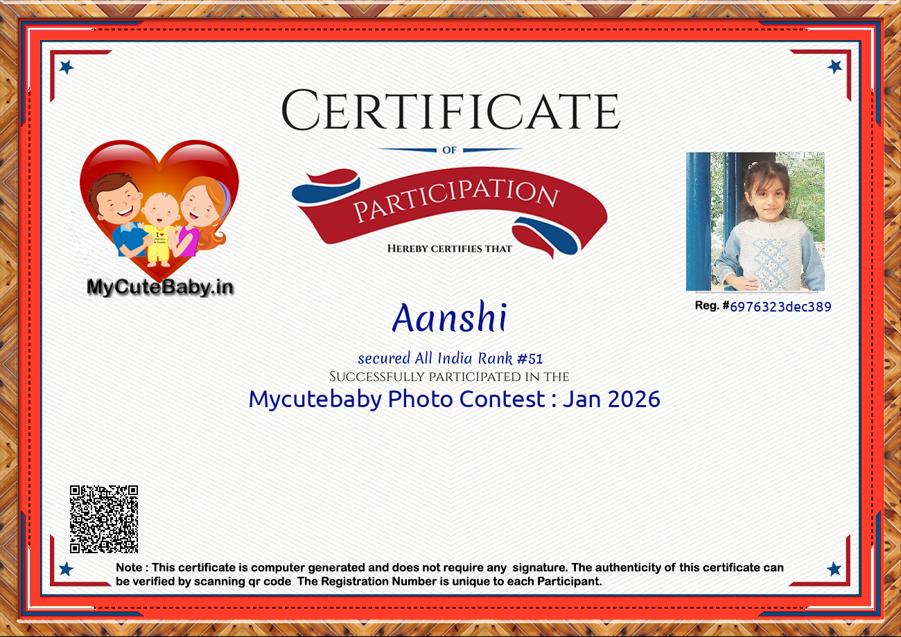 Participation certificate for all the participants whose mycutebaby votes are more than 1000.