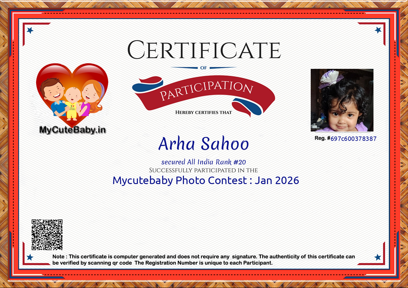 Participation certificate for all the participants whose mycutebaby votes are more than 1000.