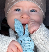 “ This is Maximka our little September baby with bright blue eyes and the warmest smile. At just months old he already knows how to fill the world with joy. He laughs with his whole heart and even strangers can’t help but smile back when they see him. He loves his little bunny holding it close like it’s his whole world — soft safe and full of love. And just like a tiny hamster he happily rolls from side to side always curious and full of life. Maximka loves banana and Long Walks Outs ”